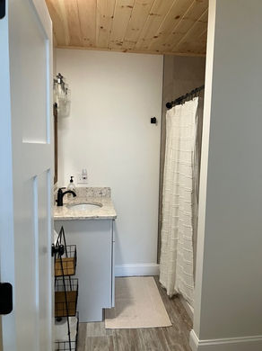 It has an open floor plan in the living area including - living room, dining room and fully equipped kitchen with dishwasher. Living area has multiple sliders that lookout to a wraparound deck overlooking the campground and a view of the lake through the birches and pines. Full bath with tub and shower. Private yet close to the central grounds.